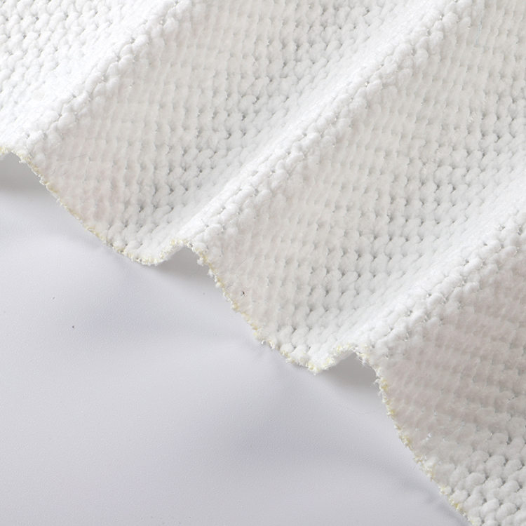 Ons Chenille 3# tapijtstof is gemaakt van 100% polyester en zorgt voor een robuust en langdurig product. De polyester samenstelling verbetert niet alleen de duurzaamheid van de stof, maar maakt het ook bestand tegen vlekken en gemakkelijk te onderhouden.
