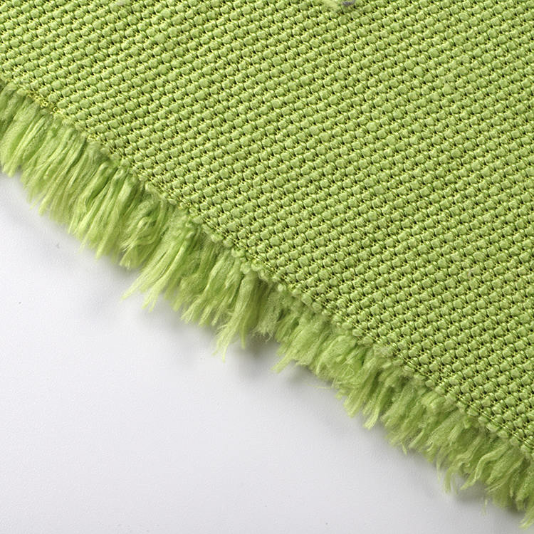 Ideaal voor een reeks toepassingen, waaronder tapijten, tapijten en badmatten, onze stof is geverfd in massieve kleuren die in de loop van de tijd levendig en vervagen blijven, waardoor blijvende schoonheid in elke omgeving zorgt. Met een minimale bestelhoeveelheid van 500 kg per kleur, bieden we gemakkelijk plaats aan zowel grootschalige productie-eisen als op maat gemaakte projecten.