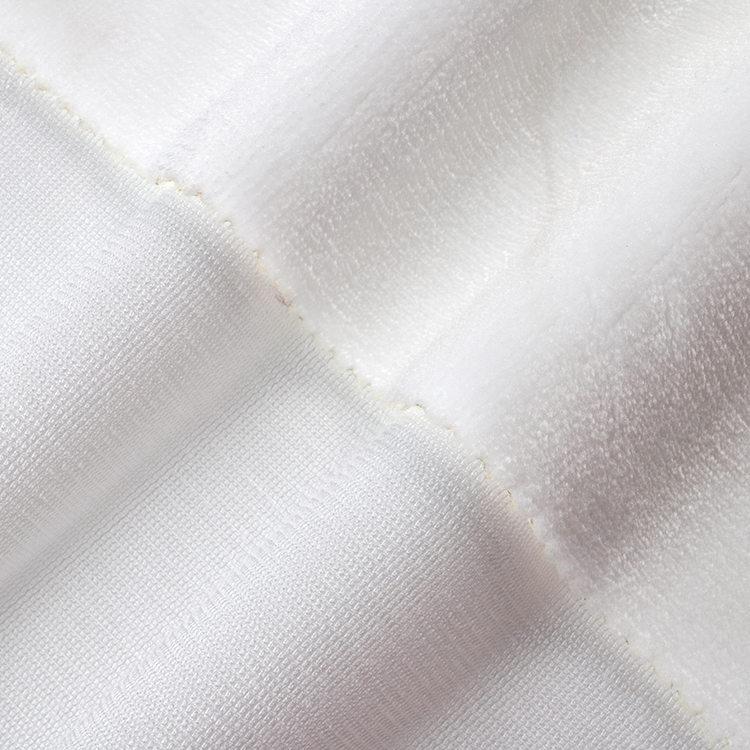 Onze PFP witte imitatie zijden stof heeft een stapelhoogte van 5 mm, waardoor een ruige, pluche oppervlak ontstaat dat comfort en visuele aantrekkingskracht verbetert. We gebruiken een gebreide techniek om een soepele, hoogwaardige afwerking te bereiken die het uiterlijk van echte zijde nabootst. Beschikbaar in breedtes van 170 cm, 190 cm en 210 cm, of aangepast aan uw specificaties, biedt deze stof veelzijdigheid om aan uw ontwerpbehoeften te voldoen.